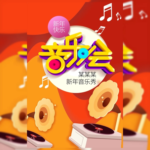 红色扁平流体现代潮流撞色大气新年音乐会演出活动邀请函
