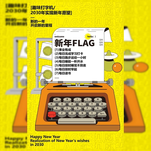 新年愿望清单打字机孟菲斯风格