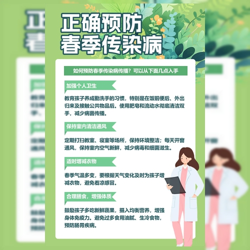 春季健康幼儿园正确预防春季传染病海报