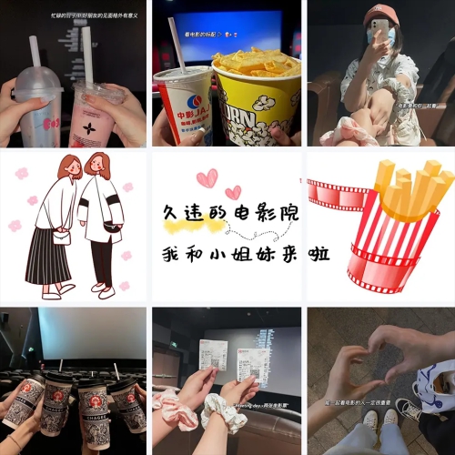 和闺蜜一起看电影生活九宫格晒图