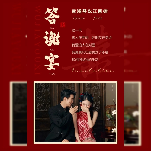 吾家有喜中国风红色喜庆婚礼请柬