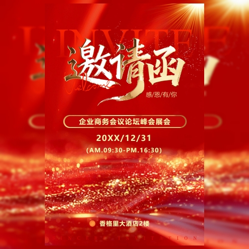 高端红金商务会议论坛峰会展会年会邀请函