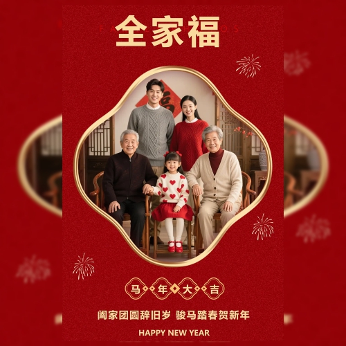 简约全家福马年春节除夕祝福拜年贺岁团聚相册