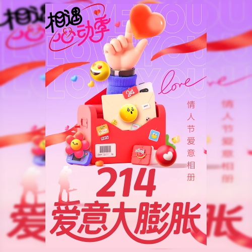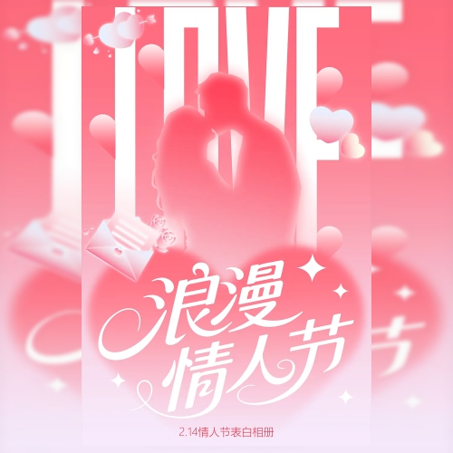 粉色渐变简约214情人节节日相册