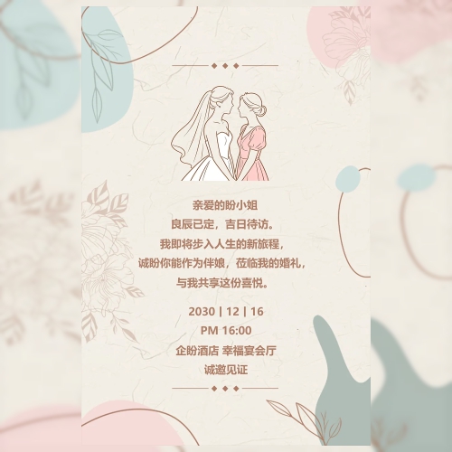 婚礼伴娘清新高端邀请函