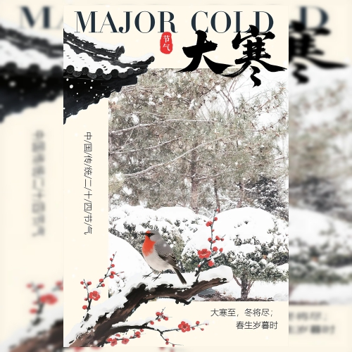 大寒冬季24节气日签新中式国画风海报
