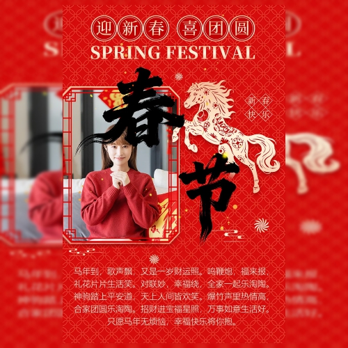 简约红色马年春节节日贺卡海报