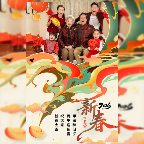 新年春节节日手绘风格海报