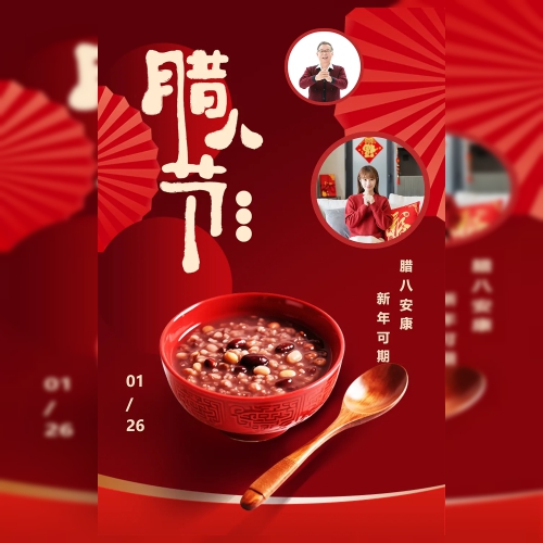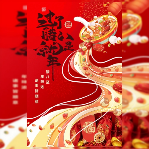 腊八节日腊八粥红金海报
